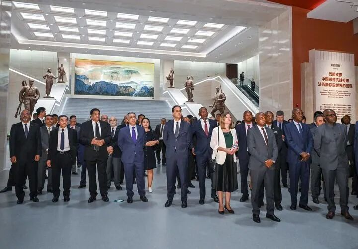 駐華外交官來到中國人民抗日戰(zhàn)爭紀(jì)念館,參觀紀(jì)念中國人民抗日戰(zhàn)爭暨世界反法西斯戰(zhàn)爭勝利80周年主題展覽《為了民族解放與世界和平》(2025年7月17日攝)。新華社記者 陳曄華 攝